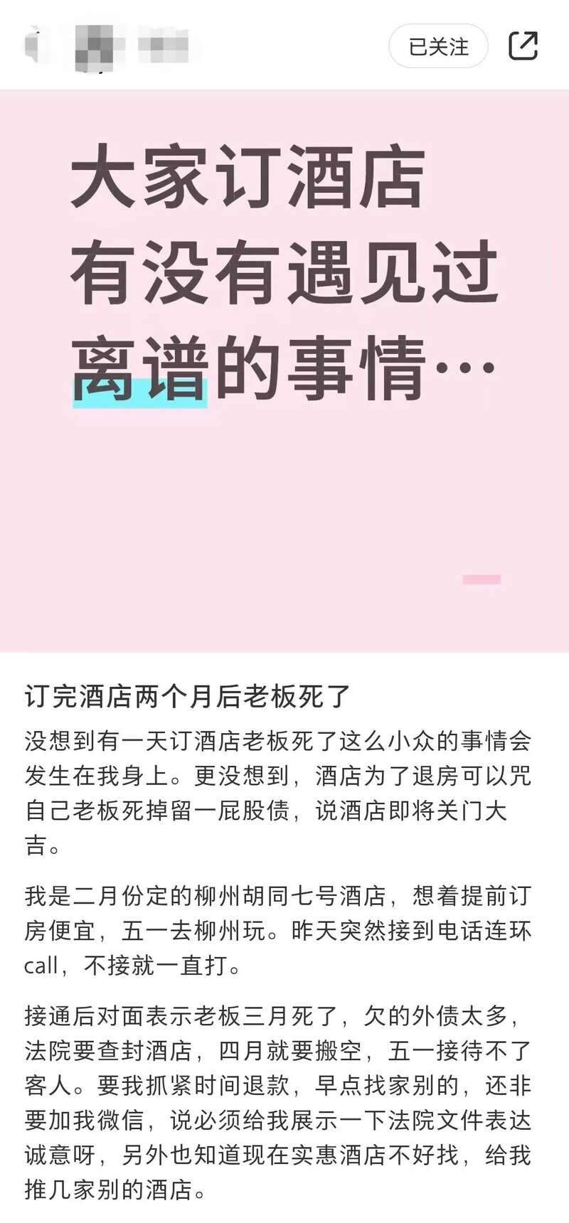 23日4月,然致电旅店突,已于三月离世示知其老板,债面对法院查封因背负巨非常,即将合停门店四月,一住宿订单无法承接五,速申请退款敦促她尽,荐其他住宿并主动推。一房源危急因忧愁五,了该旅店订单张密斯撤消,其他旅店随后预定,00多元多花费9,1400元新房总价约。