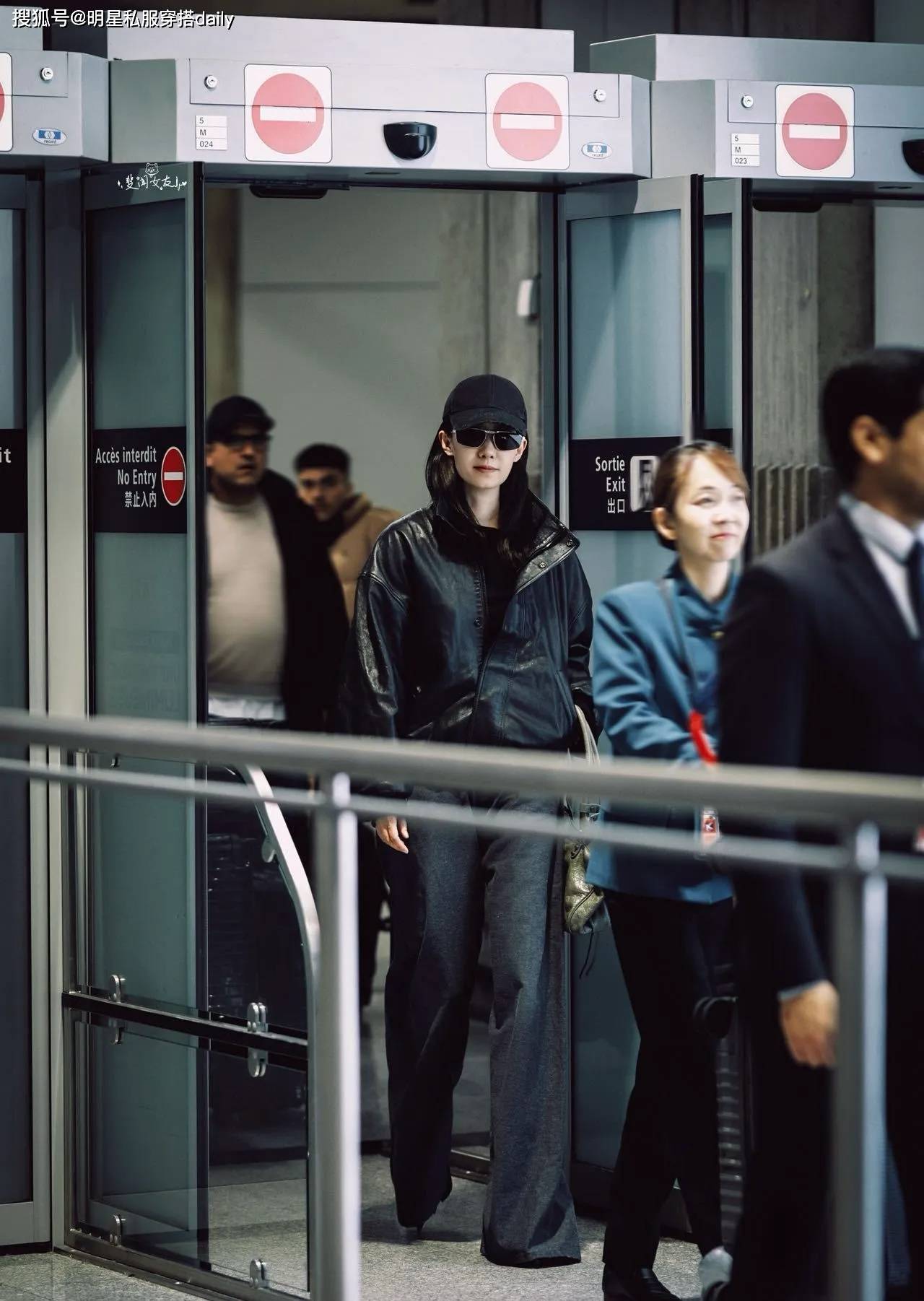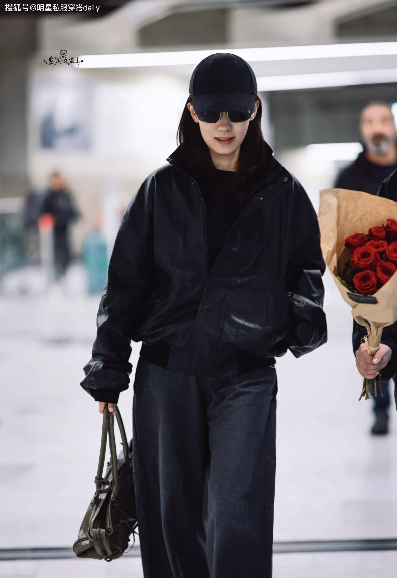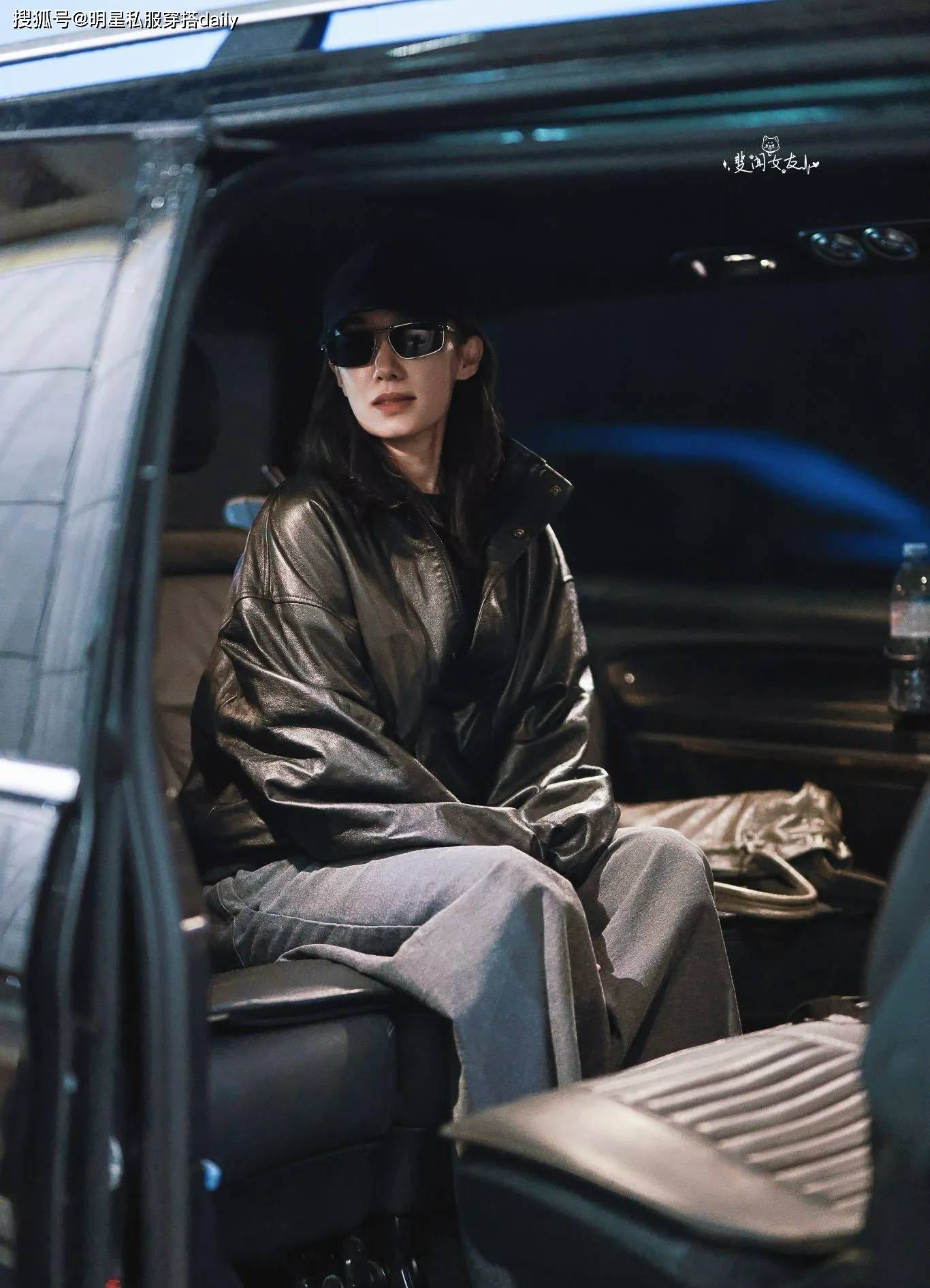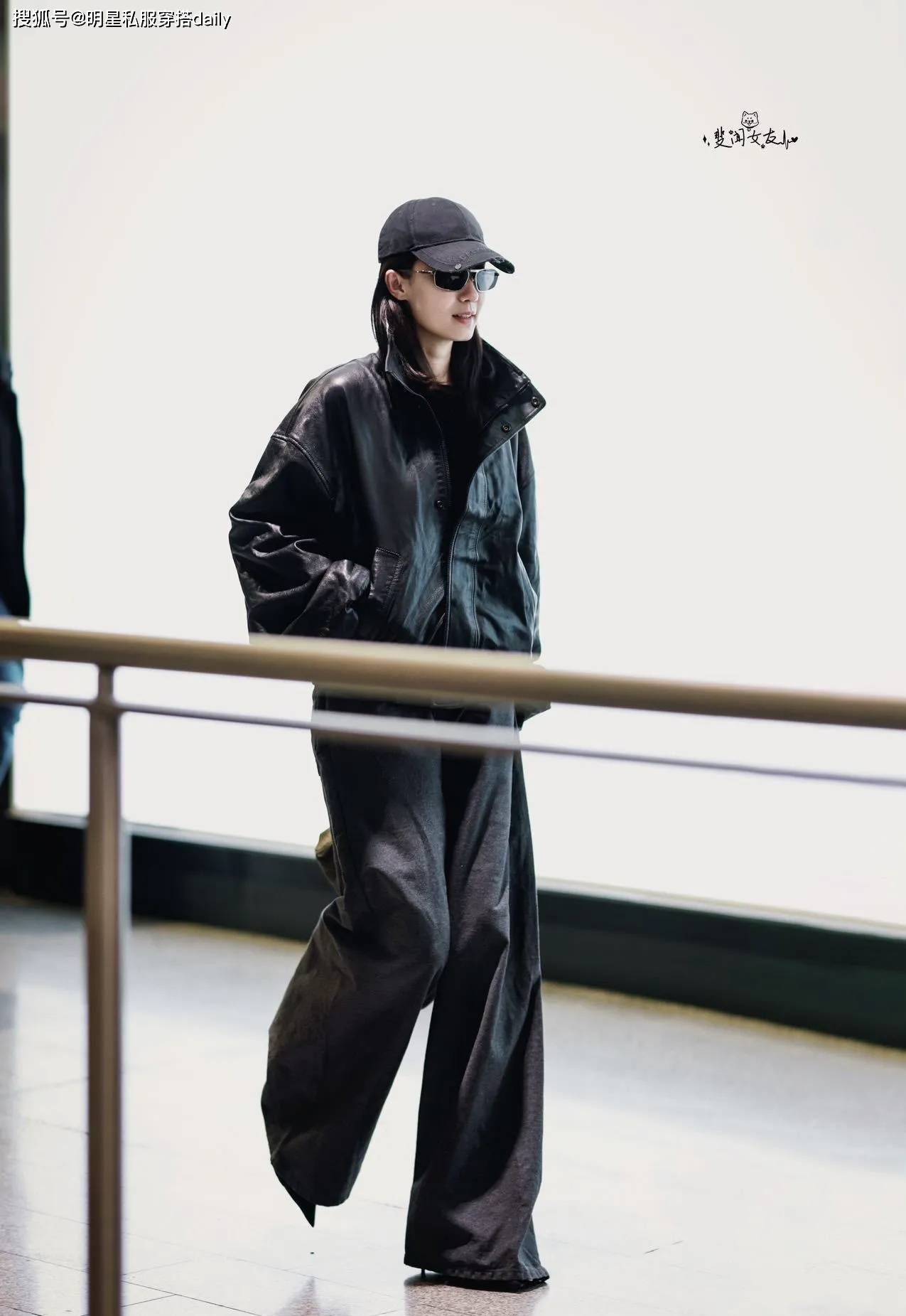 套机场造型张幼斐这,” 的技术演绎到极致将 “全黑穿搭不烦闷,潜藏三重时尚巧思看似大略的搭配!款廓形皮衣自带爽利线条她上半身选拔明晰一款短,肩线避免紧绷感却通过微宽的,高腰阔腿裤下半身搭配,拉长腿部比例以垂坠面料,的黄金比例搭配“上短下长” ,身段上风既凸显,型充满呼吸感又让全黑造,飒兼具疏漏感”圆满批注 “冷;