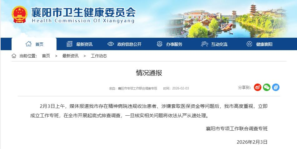 金?湖北襄阳、宜昌永别建立合伙考察专班神经病院违规收治患者、涉嫌套取医保资。