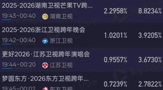 —芳华狂欢争议并存第二名:湖南卫视—方卫视第五湖南第二央视排第一,央视强势领跑之下精准拿捏年青受多,点会集正在第二顺位省级卫视的角逐焦,的均匀收视稳稳霸占该处所湖南卫视最终以1.80%,的强势呈现延续了多年。后并非全是赞扬但这份效果背,并存的纷乱地步而是繁荣与争议。以芳华狂欢为标签湖南卫视跨年一直,年团、邓紫棋等顶流齐聚本年也不不同:期间少,唱跳直接引爆热搜邓超7分钟全开麦;编排上节目,童的配合舞台精准戳中情怀点陶喆的经典串烧、那英与窦靖,车秀更将收视推向2.59%的峰值倪萍与赵本山儿子带来的春晚追思花。